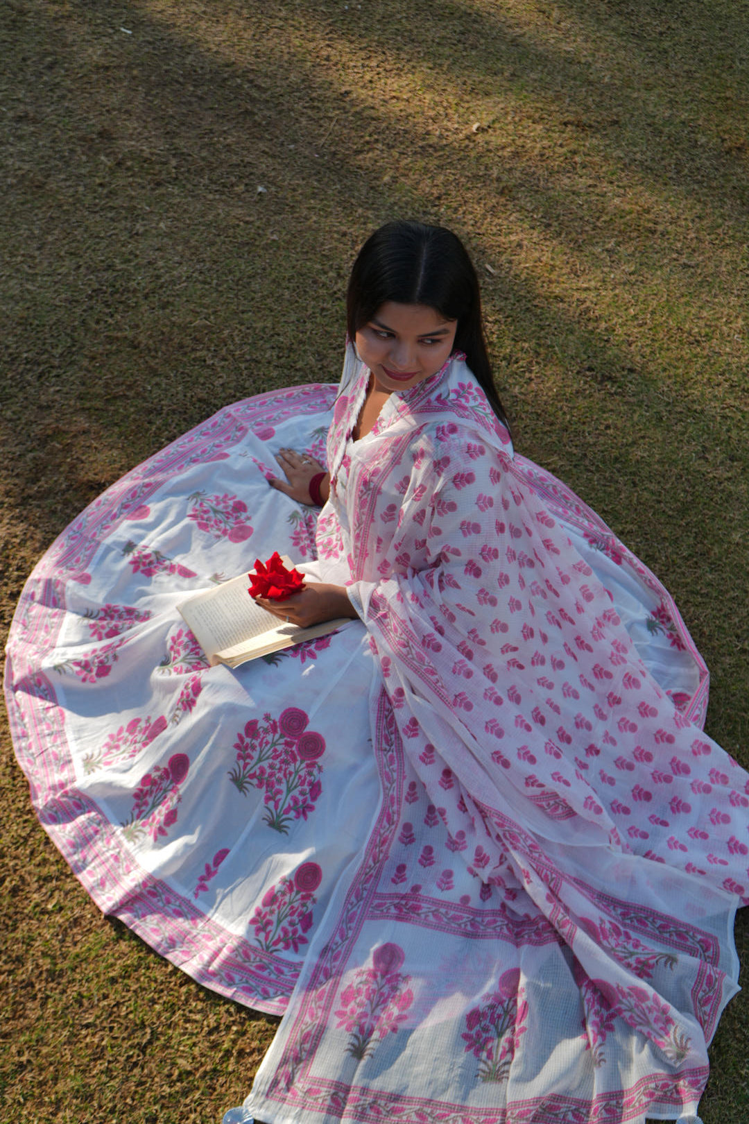 Ivory Bloom Anarkali Suit Set (Pink)